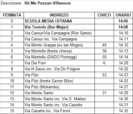 LINEA 1 - RITORNO MEDIE SALA / PEZZAN ore 14:00