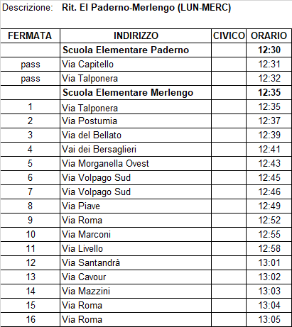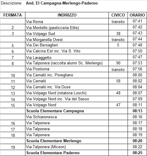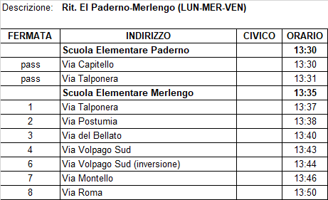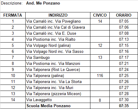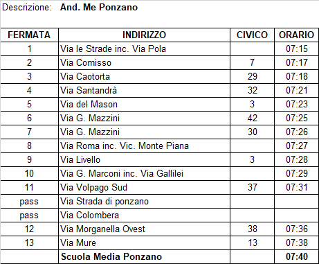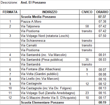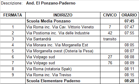 SERVIZIO DI TRASPORTO SCOLASTICO PER IL COMUNE DI PONZANO VENETO (TV)